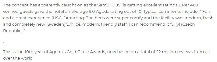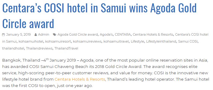 Centara's COSI hotel in Samui wins Agoda Gold Circle award